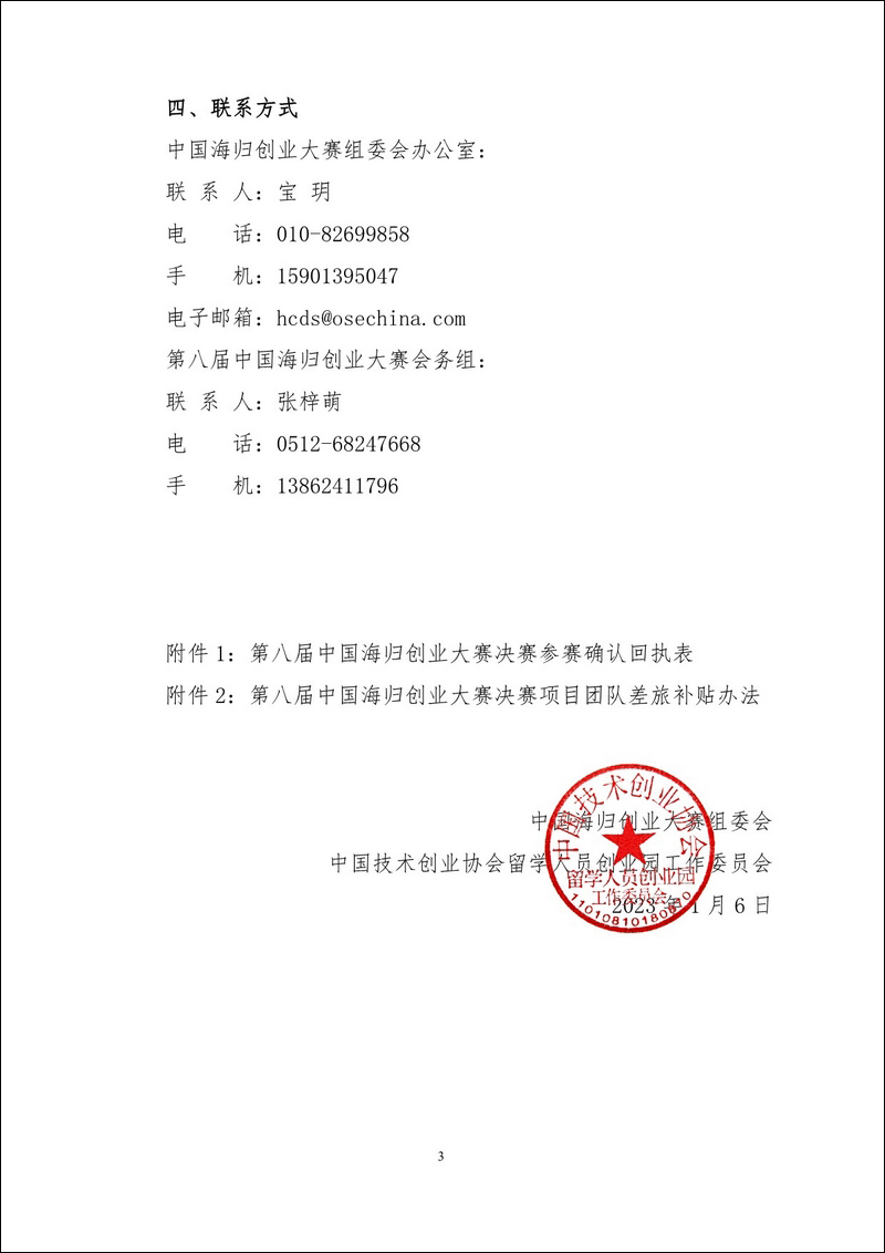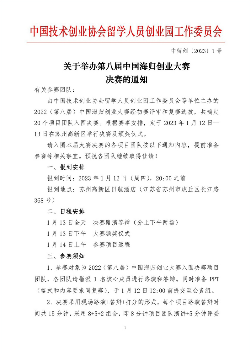 發(fā)文時(shí)間:2023-01-06 發(fā)文單位:中國(guó)技術(shù)創(chuàng)業(yè)協(xié)會(huì)留學(xué)人員創(chuàng)業(yè)園工作委員會(huì) 中留創(chuàng)〔2023〕1號(hào)